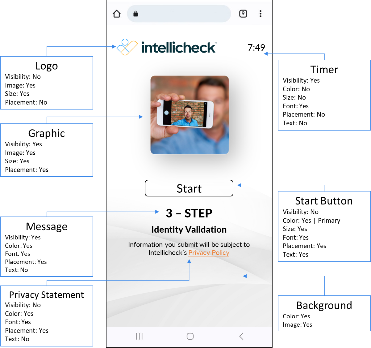 Capture flow is fixed and cannot be changed. The page-by-page order is determined by your implementation (2-step or 3-step), device settings, and end-user choices. Therefore, all pages are not necessarily included for every flow.
